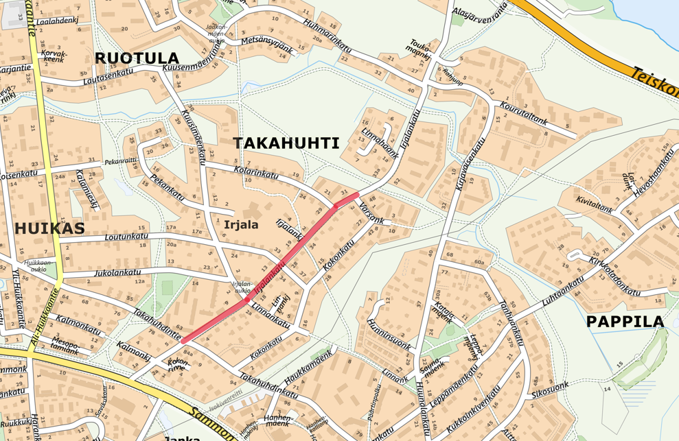 Irjalassa aloitetaan Irjalankadun katutyöt tällä viikolla. Katua remontoidaan Takahuhdintien ja Varsankadun välisellä osuudella vuonna 2026. Työt aloitetaan kahdesta suunnasta, Varsankadun risteyksessä sekä Takahuhdintien risteyksessä.